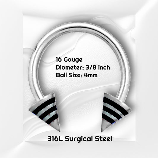 Black Stripe Spike Septum Horseshoe (Externally Threaded) - 10212