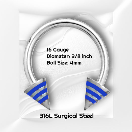 Blue Stripe Spike Septum Horseshoe (Externally Threaded) - 10213