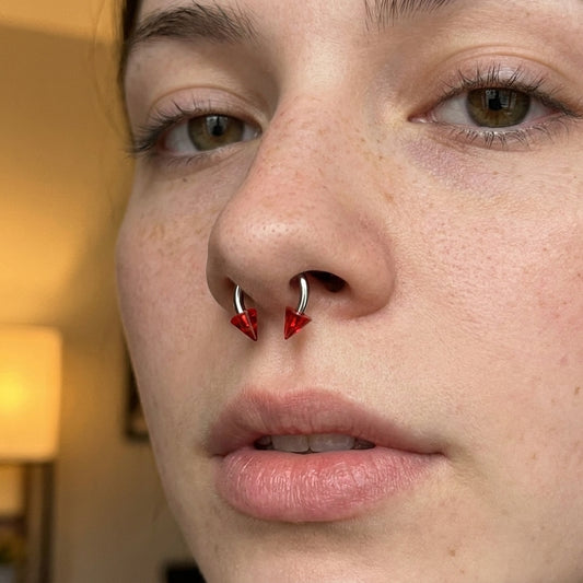 Spike Septum Ring 16 Gauge 316L Surgical Steel & Acrylic Red Clear