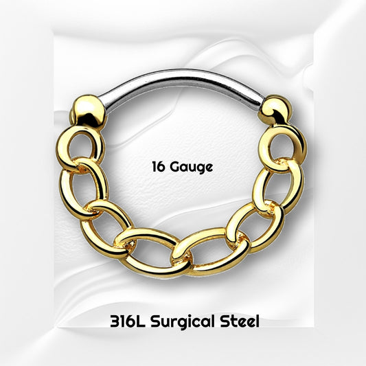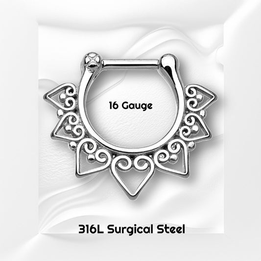 Dive into our collection of surgical steel septum rings, perfect for showing off your unique style. Do you rock classic septum clickers for an elegant look? Do you wear stylish hoops for a touch of fun? No worries, we've got something for everyone. Worried about discomfort? Don't sweat it! Our high-quality septum rings are gentle on your skin, so you can show off your new piercing without problems. We offer simple designs for a subtle touch or dazzling gems for a show-stopping statement. Explore endless possibilities to decorate your septum piercing with confidence!